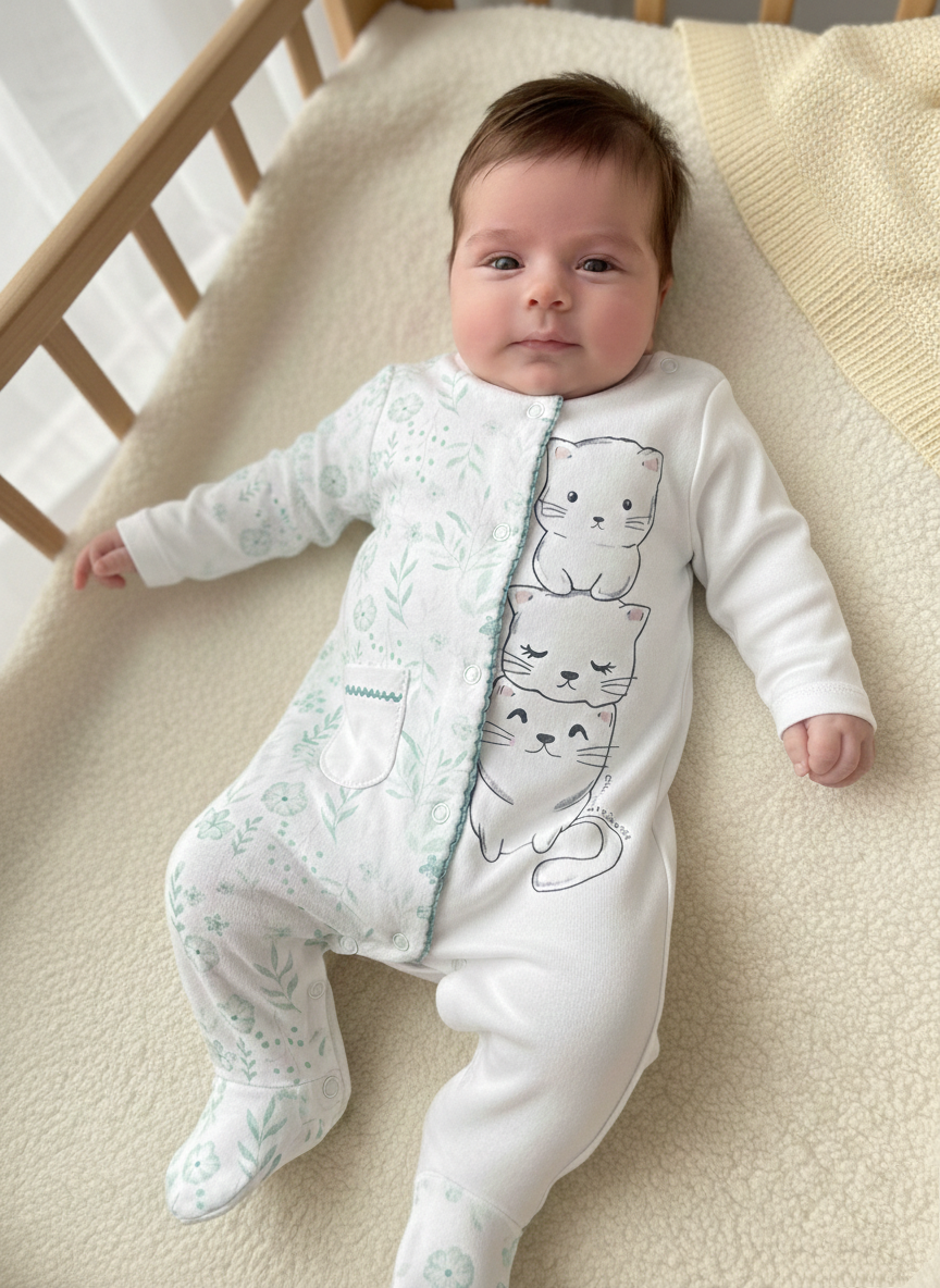 bebek kedi baskılı patikli tulum